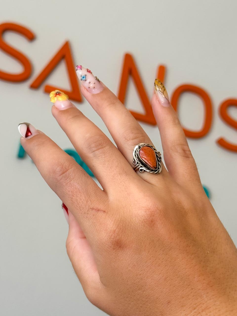 Anel Mudra | Ágata Laranja com pedra natural e regulável.
