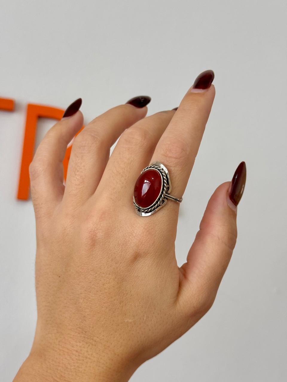 Anel Mudra | Ágata Laranja- com pedra natural e regulável.