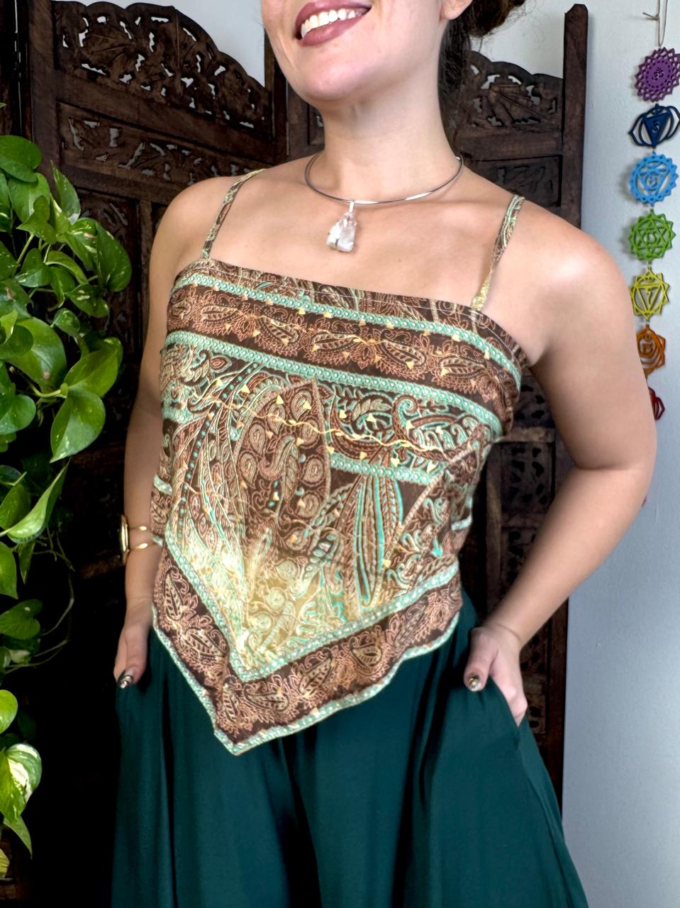 Delicada e cheia de personalidade, nossa Bata Canário  em formato bandana é a peça perfeita para quem busca estilo com leveza. Confeccionada em seda de toque suave e caimento fluido, ela traz estampas exclusivas que valorizam o visual e adicionam um ar moderno e sofisticado.