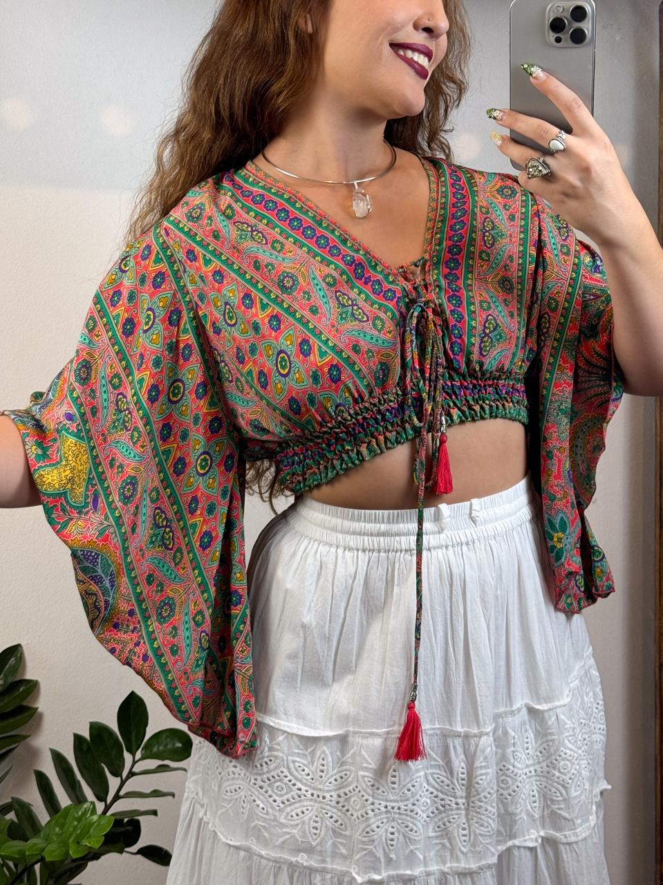 Elástico na cintura + cordões de ajuste (frente/costas)