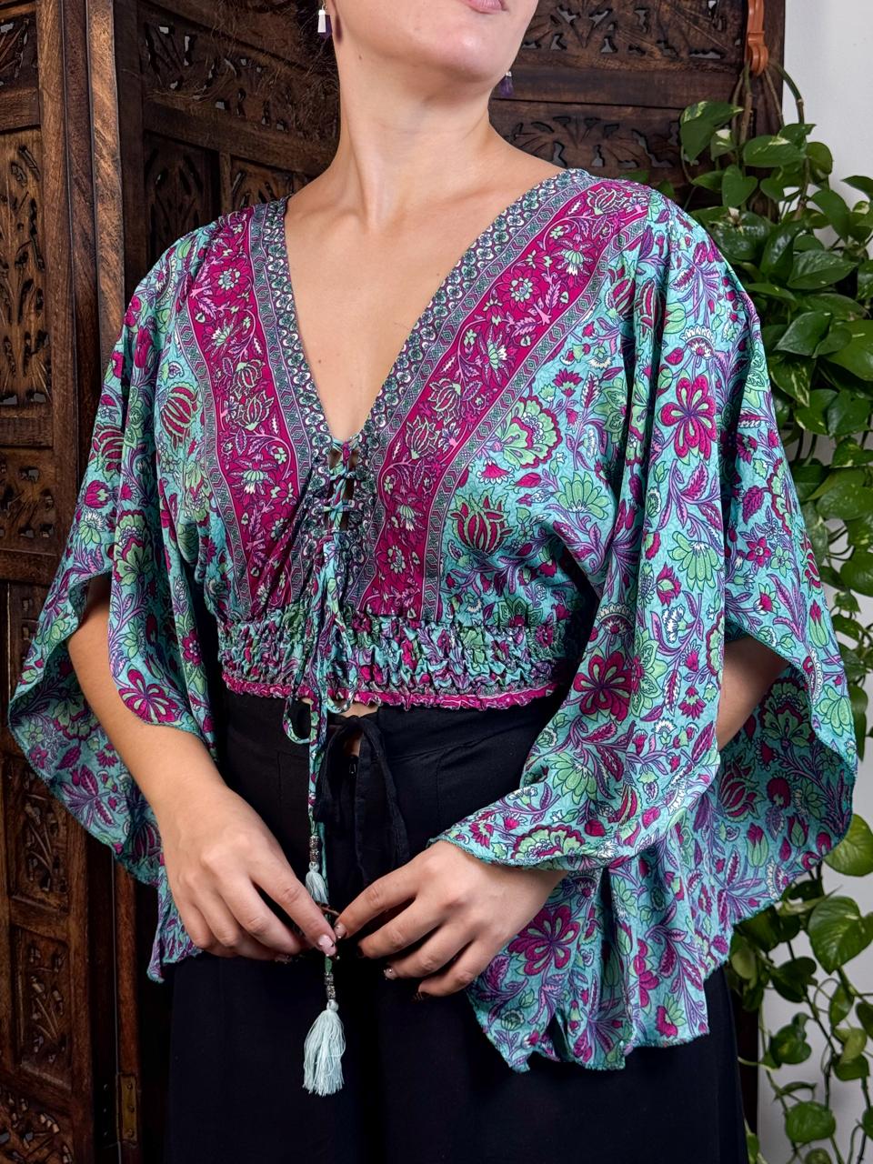 Elástico na cintura + cordões de ajuste (frente/costas)