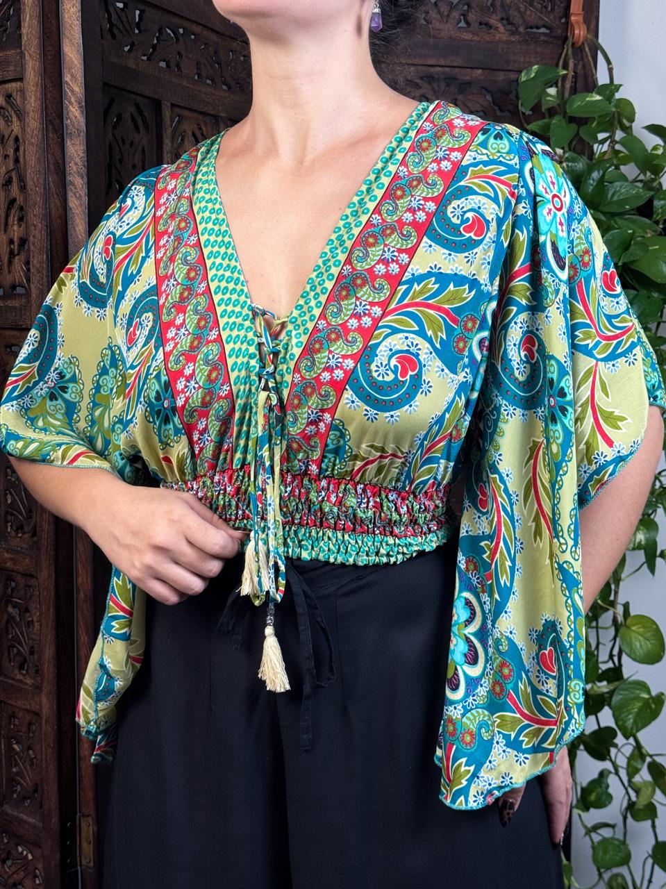 Elástico na cintura + cordões de ajuste (frente/costas)