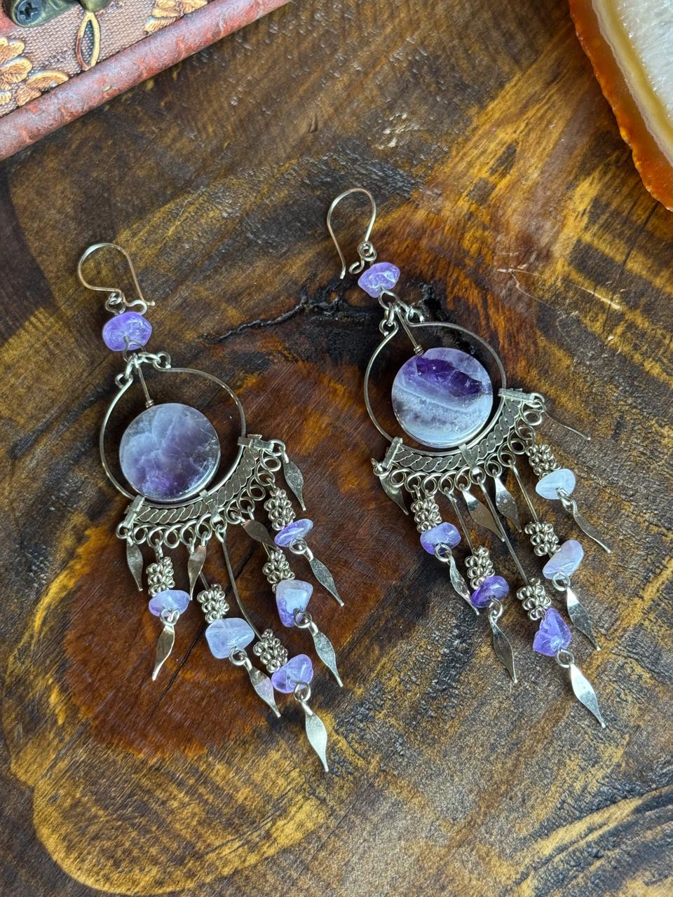 BRINCO HIPPIE| AMETISTA - com pedras naturais.