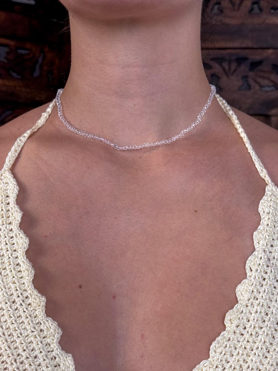 A Choker Cristal é o toque perfeito de leveza e charme para o seu visual. Feita à mão com miçangas delicadas e cuidadosamente alinhadas, essa peça traz uma beleza minimalista que combina com qualquer estilo — do casual ao sofisticado.