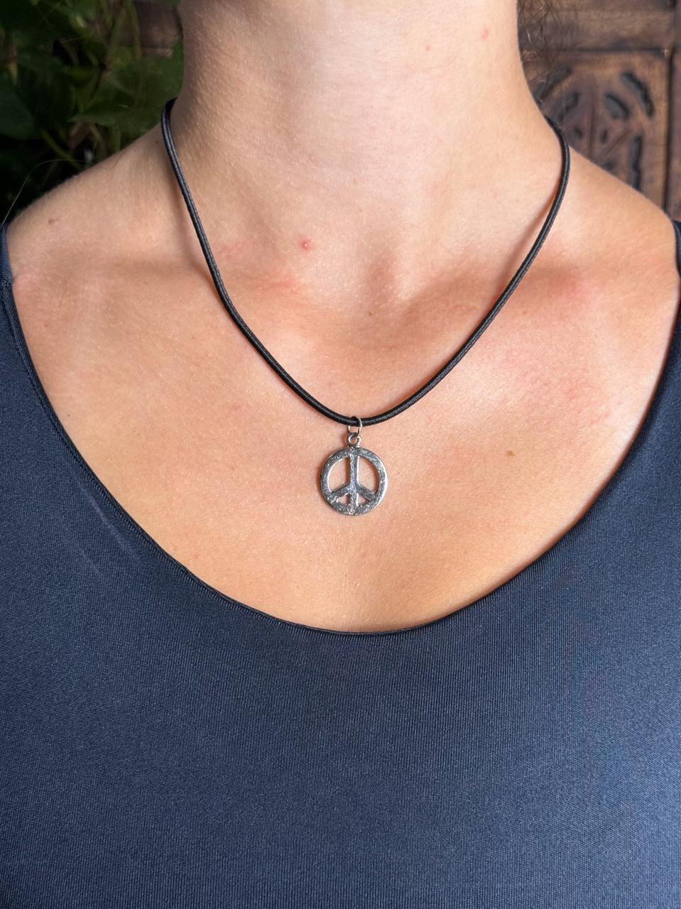 O Colar Paz e Amor é o acessório perfeito para quem carrega no coração o espírito livre e a energia positiva do movimento hippie. Com o clássico símbolo da paz, esta peça representa harmonia, amor e liberdade, tornando-se um amuleto de boas vibrações para o dia a dia.