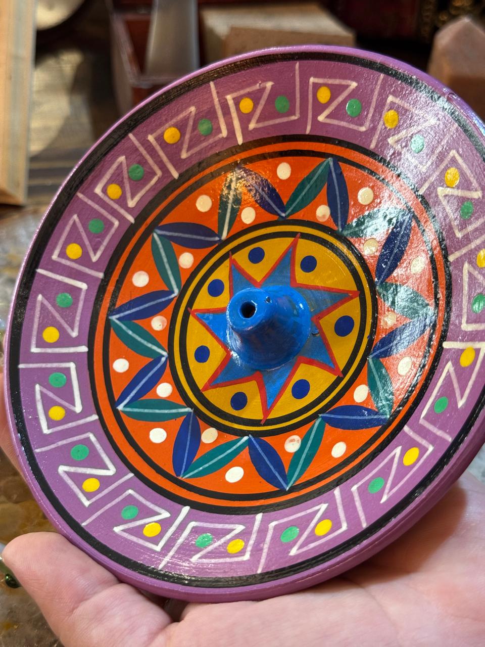 Uma verdadeira obra de arte artesanal, feita com cuidado e carregada de cultura. Cada detalhe pintado à mão reflete a riqueza das tradições andinas, trazendo cores vibrantes e símbolos que representam harmonia, natureza e espiritualidade.