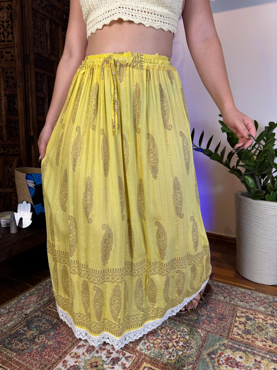 Com vibe leve e espírito livre, essa saia é a cara de dias de sol e momentos inesquecíveis. Feita em crepe de viscose tem um caimento fluido que acompanha cada passo com leveza. Ideal para viagens, festivais ou produções boho cheias de estilo.