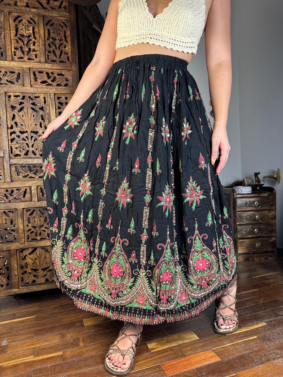 Encante-se com a elegância e o charme da Saia Hare. Seu caimento impecável proporciona conforto e sofisticação e suas aplicações e bordados enriquecem a peça com um toque cultural e exclusivo. A saia perfeita para quem busca estilo com autenticidade. Cintura ajustável para um encaixe perfeito e liberdade nos movimentos.