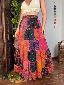 Nossa saia Woodstock é confeccionada em retalhos de viscose unindo diferentes cores e estampas em uma composição vibrante e cheia de personalidade. Cada peça é única, com um mix artesanal que valoriza o reaproveitamento criativo de materiais. Perfeita para quem ama um estilo boho, livre e consciente.