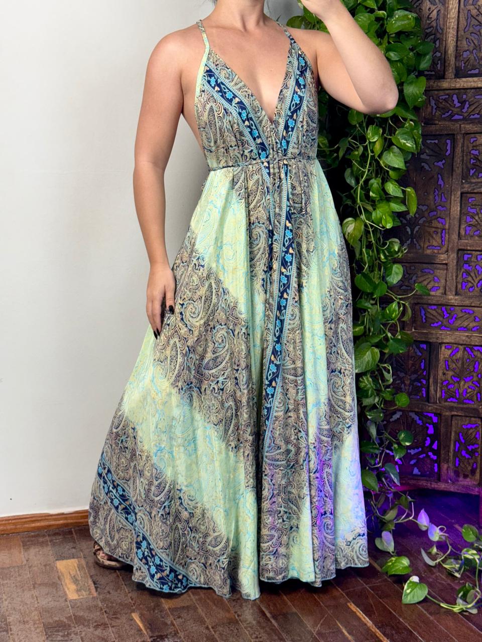 Fora do convencional, o Vestido Indiano Magnólia traz seu charme em recortes acinturados, com amplitude e estampas ricas. Pra quem ama surpreender, nosso vestido Mag também pode ser usado como frente única montando um look poderoso sem esforço.