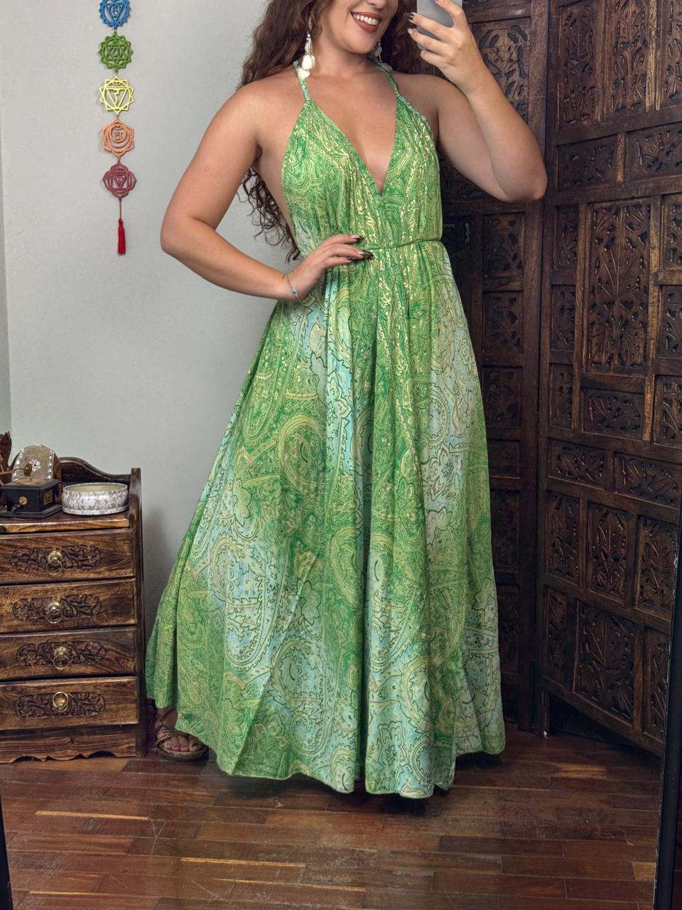 Fora do convencional, o Vestido Indiano Magnólia traz seu charme em recortes acinturados, com amplitude e estampas ricas. Pra quem ama surpreender, nosso vestido Mag também pode ser usado como frente única montando um look poderoso sem esforço.