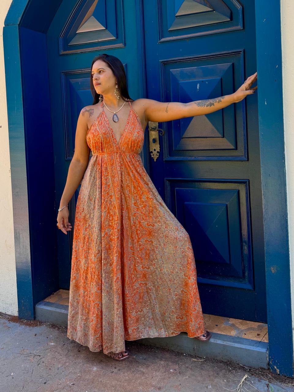Fora do convencional, o Vestido Indiano Magnólia traz seu charme em recortes acinturados, com amplitude e estampas ricas. Pra quem ama surpreender, nosso vestido Mag também pode ser usado como frente única montando um look poderoso sem esforço.