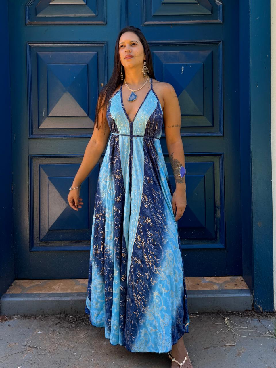 Fora do convencional, o Vestido Indiano Magnólia traz seu charme em recortes acinturados, com amplitude e estampas ricas. Pra quem ama surpreender, nosso vestido Mag também pode ser usado como frente única montando um look poderoso sem esforço.
