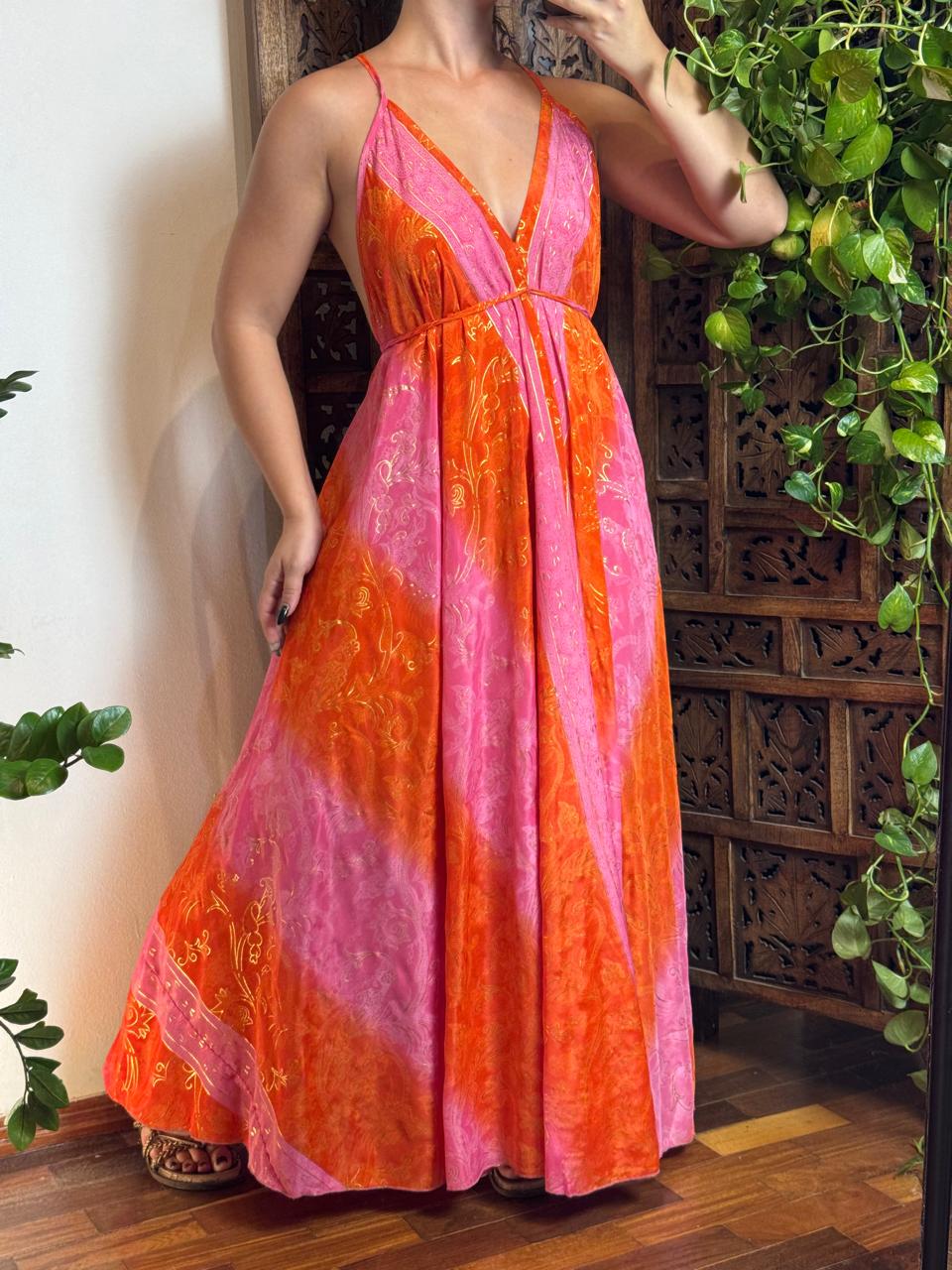 Fora do convencional, o Vestido Indiano Magnólia traz seu charme em recortes acinturados, com amplitude e estampas ricas. Pra quem ama surpreender, nosso vestido Mag também pode ser usado como frente única montando um look poderoso sem esforço.