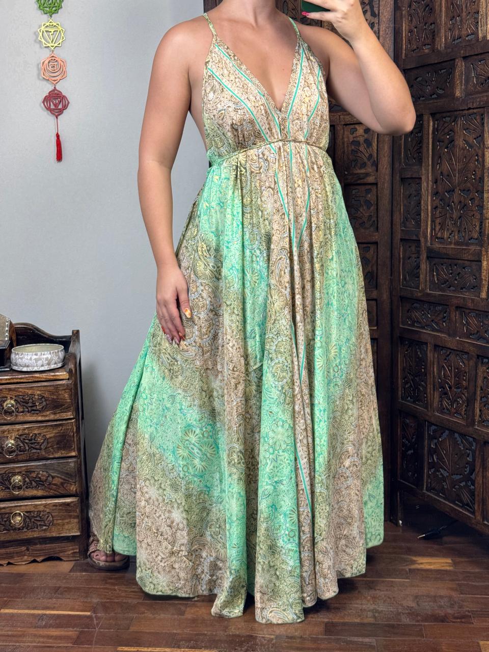 Fora do convencional, o Vestido Indiano Magnólia traz seu charme em recortes acinturados, com amplitude e estampas ricas. Pra quem ama surpreender, nosso vestido Mag também pode ser usado como frente única montando um look poderoso sem esforço.